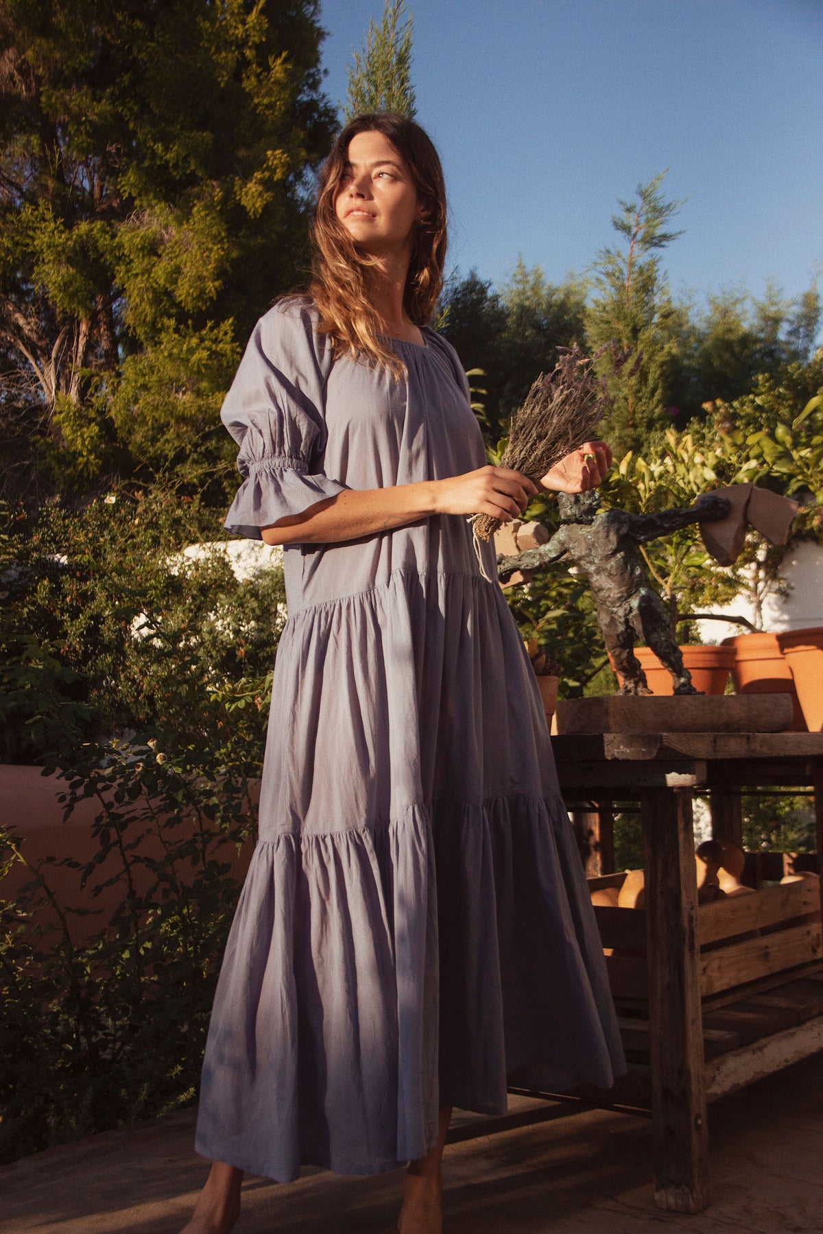 The elegance of our Sahana Gown is sure to evoke the inner goddess making everyday wear effortless. This timeless design is featured in a tiered silhouette with a soft round neckline, pockets, and puff sleeves for added shape and character.