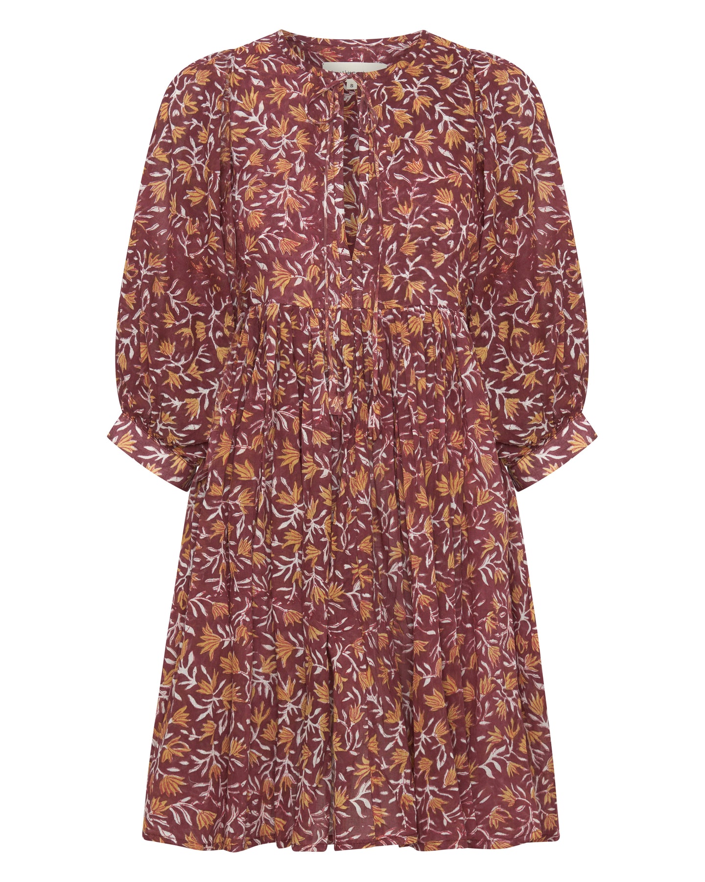 Designed with the freedom to flow with ease ~ Our signature Kyra Mini Dress in a palette of florals and Sumac spice. Handmade using the traditional method of block printing, an ancient Indian artistry that has been passed down through generations. Her billowed sleeves and full flowing skirt reminisce with the magic of golden hues and sunset haze. Lovingly made with gratitude for our beautiful Mother Earth.